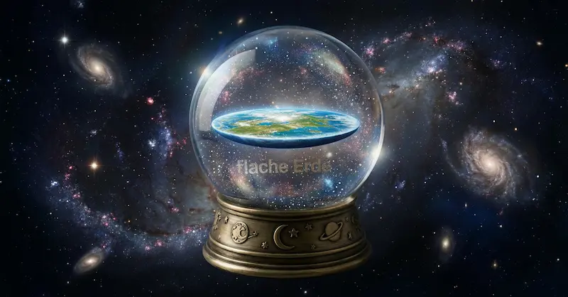 • Physisch: Die „Erde“ ist eine flache, stationäre Scheibe mit einem Durchmesser von ca. 40.000–50.000 km (nicht 12.742 km wie offiziell).