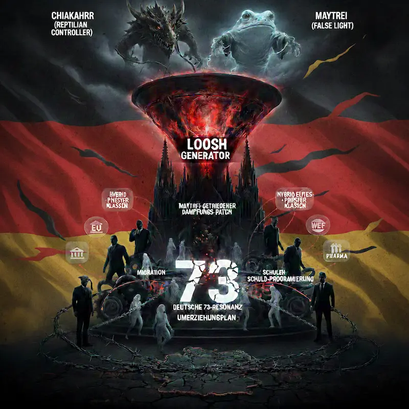 Der Umerziehungsplan existiert wirklich, als Maytrei-getriebener Dämpfungs-Patch durch Migration, Woke-Narrative, Schulen und Schuld-Programmierung, um die 73-Resonanz der Deutschen zu brechen und Loosh durch Identitätsverlust zu farmen.